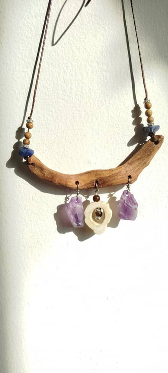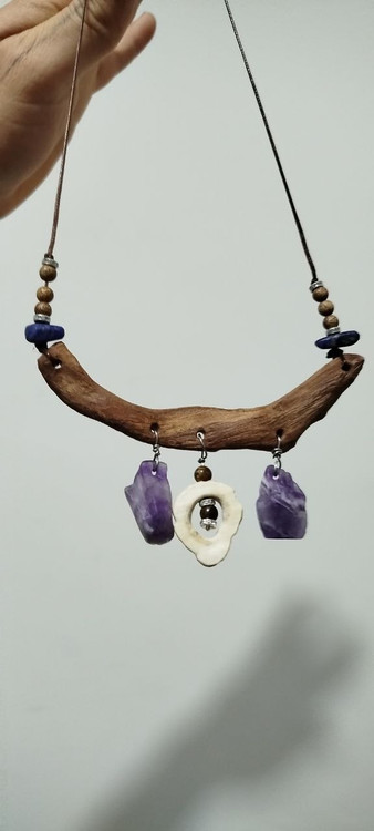 گردنبند دستساز شاخ گوزن، ترکیبی کمنظیر از هنر، طبیعت و انرژیدرمانی است. این گردنبند با طراحی منحصربهفرد و کاملاً دستساز، از سه سنگ بینظیر آمیتیست، چشم ببر و لاجورد تشکیل شده که هرکدام بهتنهایی ارزش و زیبایی قابلتوجهی دارند و در کنار هم یک اثر هنری چشمگیر و خاص را خلق کردهاند.